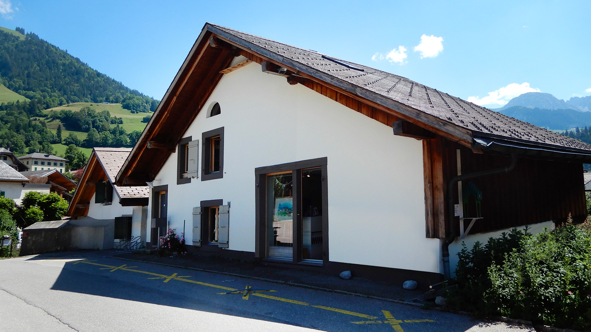 La façade de l’entrée donne sur la place du village. La façade nord est borne et jouxte la maison villageoise voisine. De par sa proximité avec la place du village, la propriété a rarement besoin d’être déneigée.